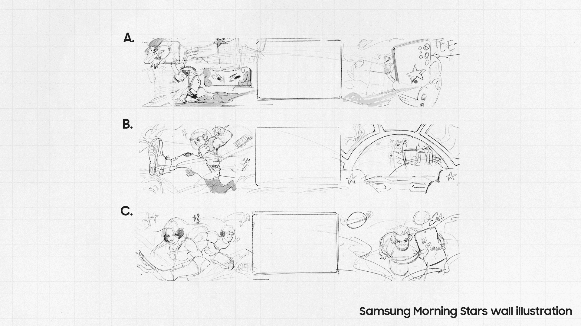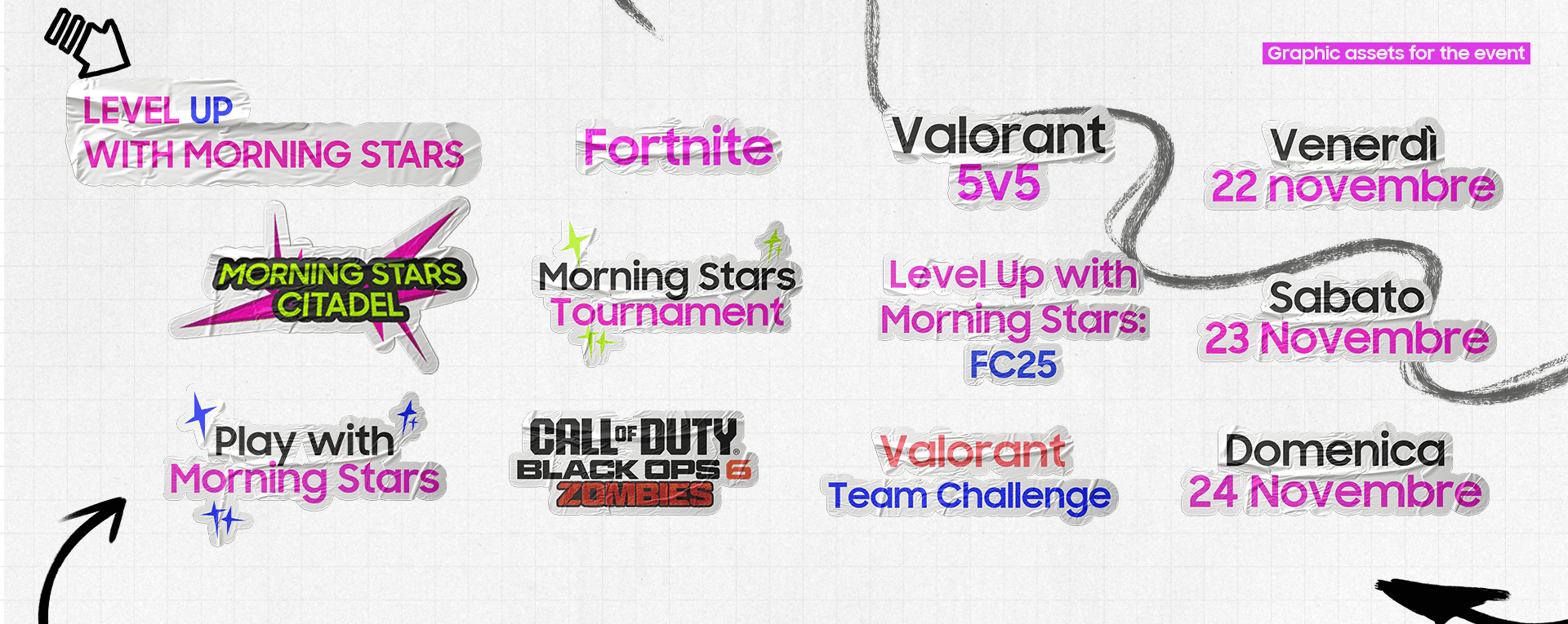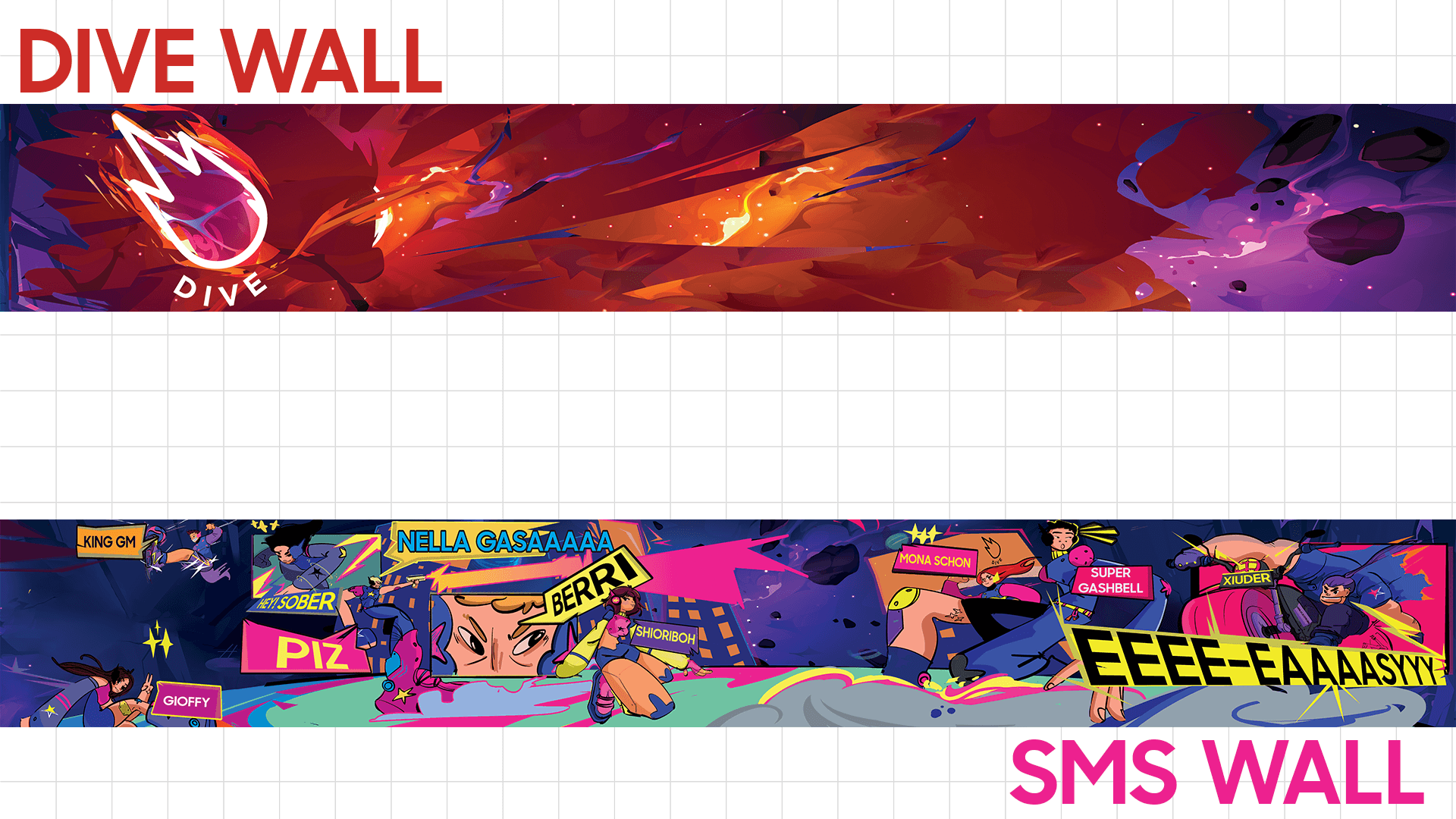 The challenge was to create a visually impactful stand identity that could stand out in a crowded event environment while clearly defining two connected but distinct spaces: the Morning Stars Citadel, dedicated to activities between creators and the gaming community around Samsung devices, and the Dive lounge, designed for Dive creators. The visual direction needed to feel bold, engaging, and recognizable across both physical space and social communication, while remaining aligned with Samsung’s presence and the overall event experience.
