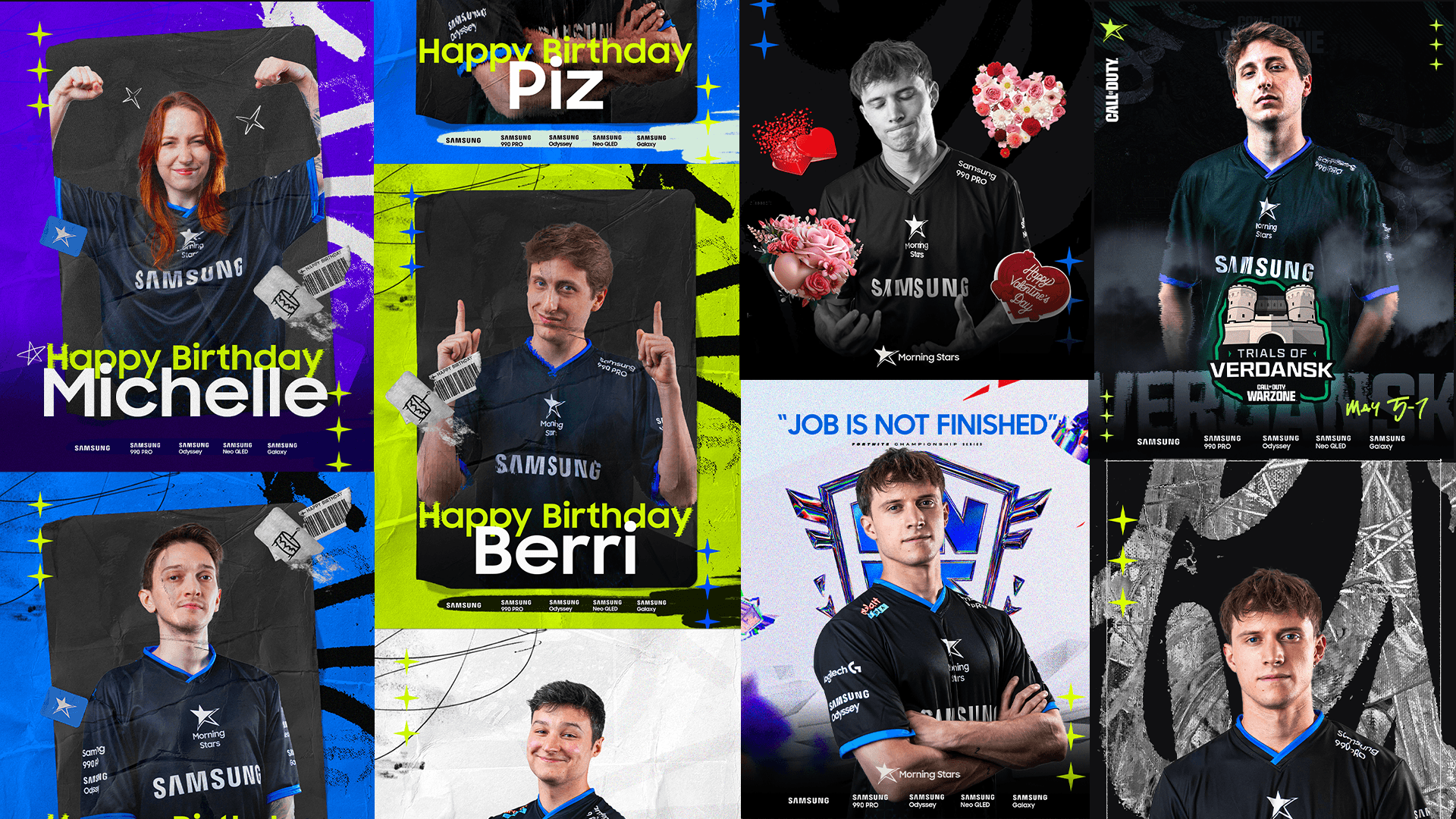 For 2025, Morning Stars needed an updated visual direction that could reflect its evolution from a more esports-focused team into a broader creator crew. The project focused on refreshing the visual identity through a new palette and a more flexible set of graphic assets, designed to support different types of content and personalities within the team.
