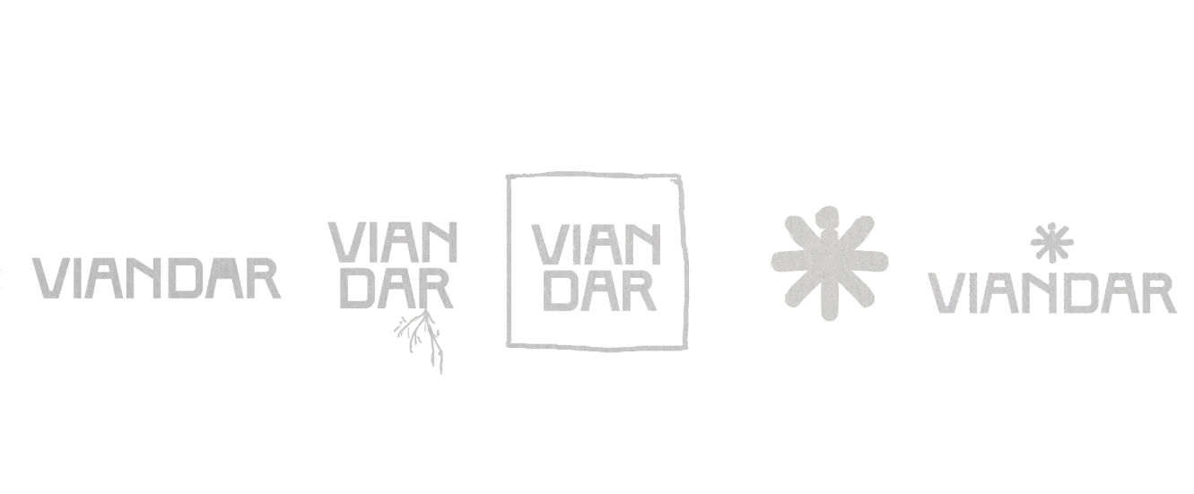 I created Viandar’s visual identity through a more organic and tactile design approach, shaped by the idea of travel as a human and sensory experience. The logo was designed by hand to reflect the warmth and irregularity of handmade souvenirs — objects that often carry the feeling of a place more authentically than something polished or industrial. This choice helped build a more intimate and recognisable identity, supported by irregular forms, tactile references, and a flexible visual system.